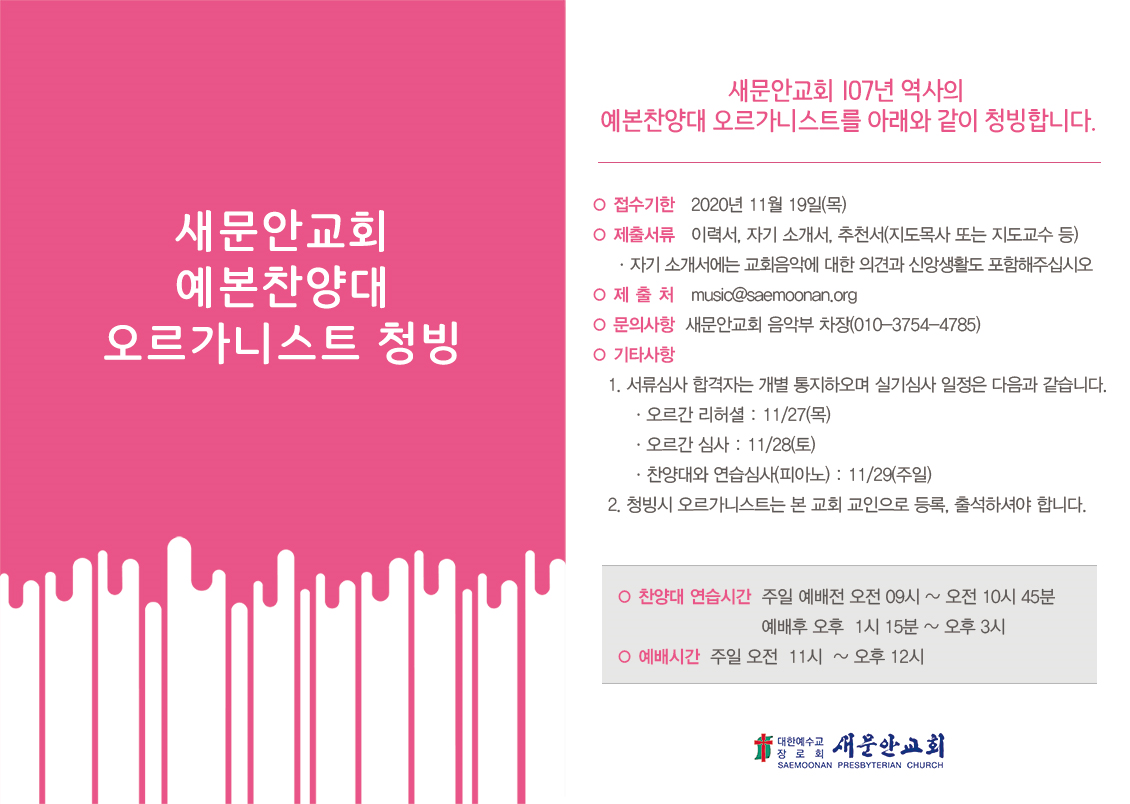 2020학년도 전기 성공회대학교 신학대학원 교회음악과정 석사과정(M...
