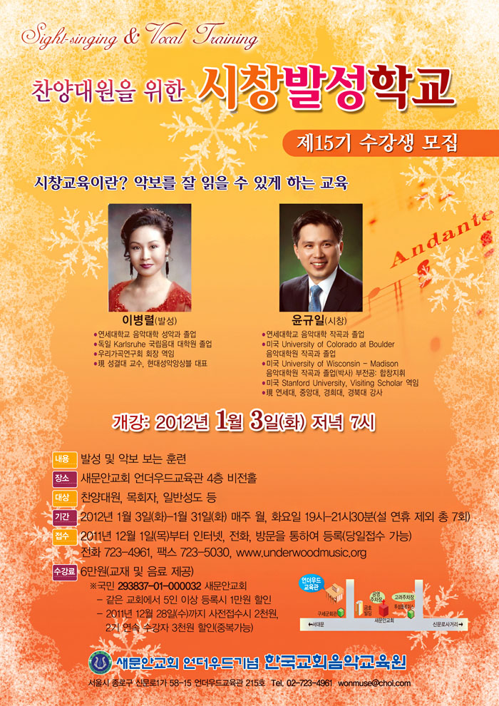2012년 1학기 교회음악과정 수강생 모집