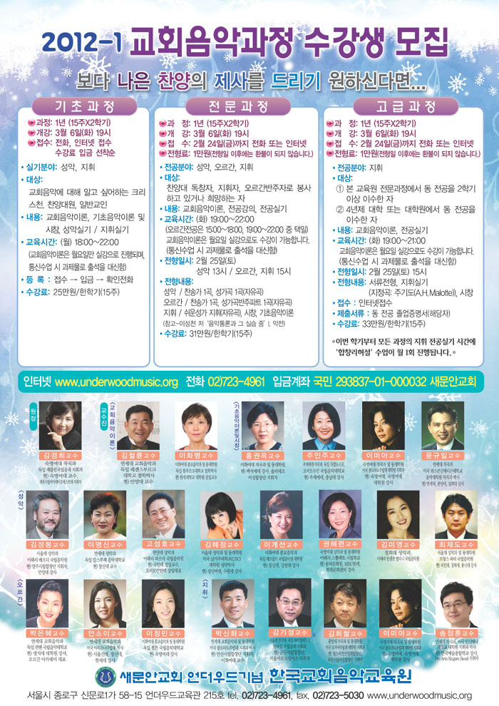 2012년 1학기 교회음악과정 수강생 모집수강신청 바로가기->